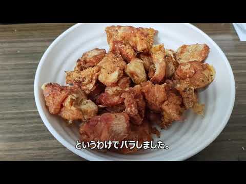 切って調味料まぶしたささみを、ノンフライヤーに並べていくおっさん。
