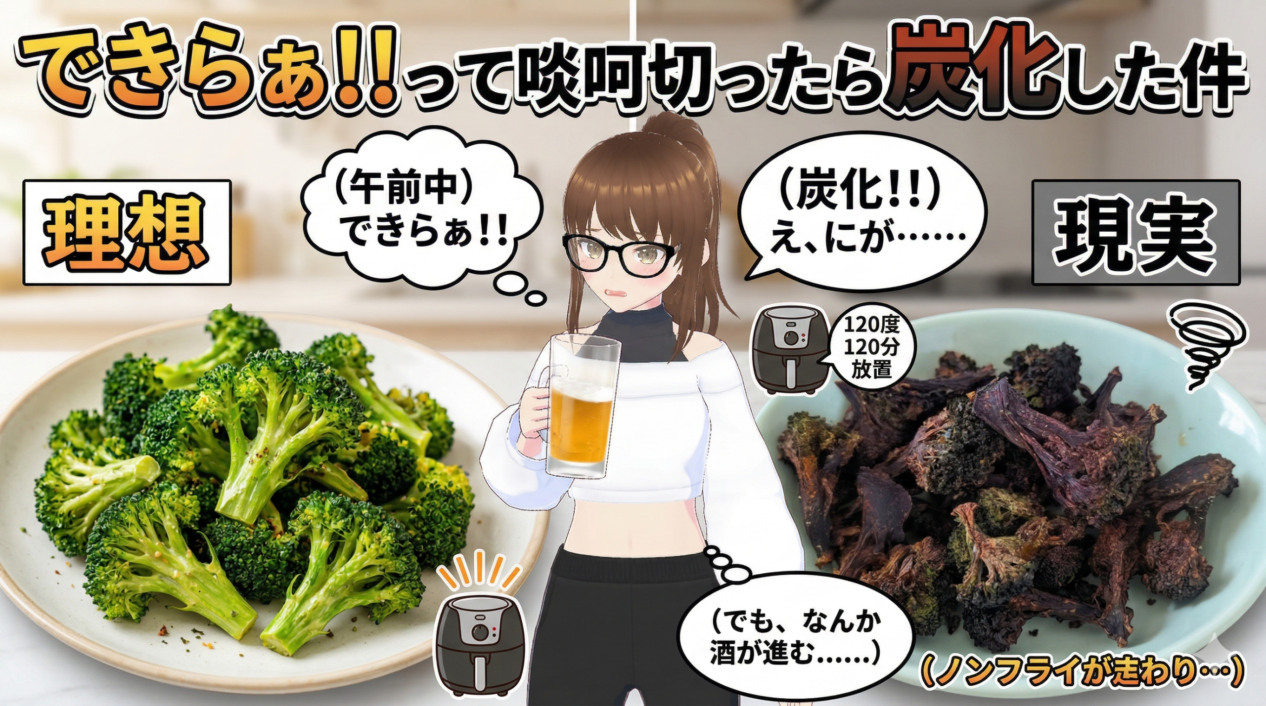 ノンフライヤーの中では、ブロッコリーが静かに運命の分岐点を越えていた。