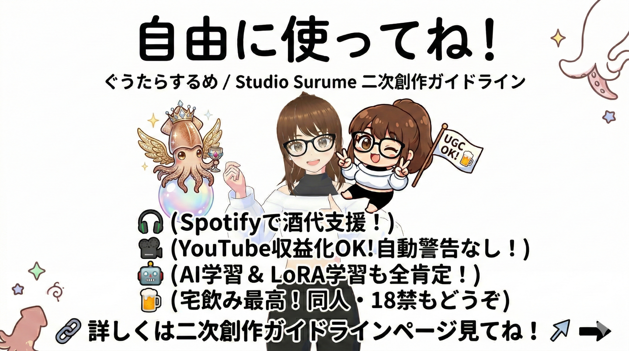 クリエイターのみなさんが、安心して「するめ」をこねくり回せるように、ちょっとだけお約束をまとめましたよー!