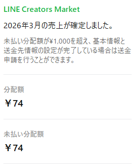 というわけで、 LINEスタンプで一攫千金を狙った結果、 収益74円を達成しました。