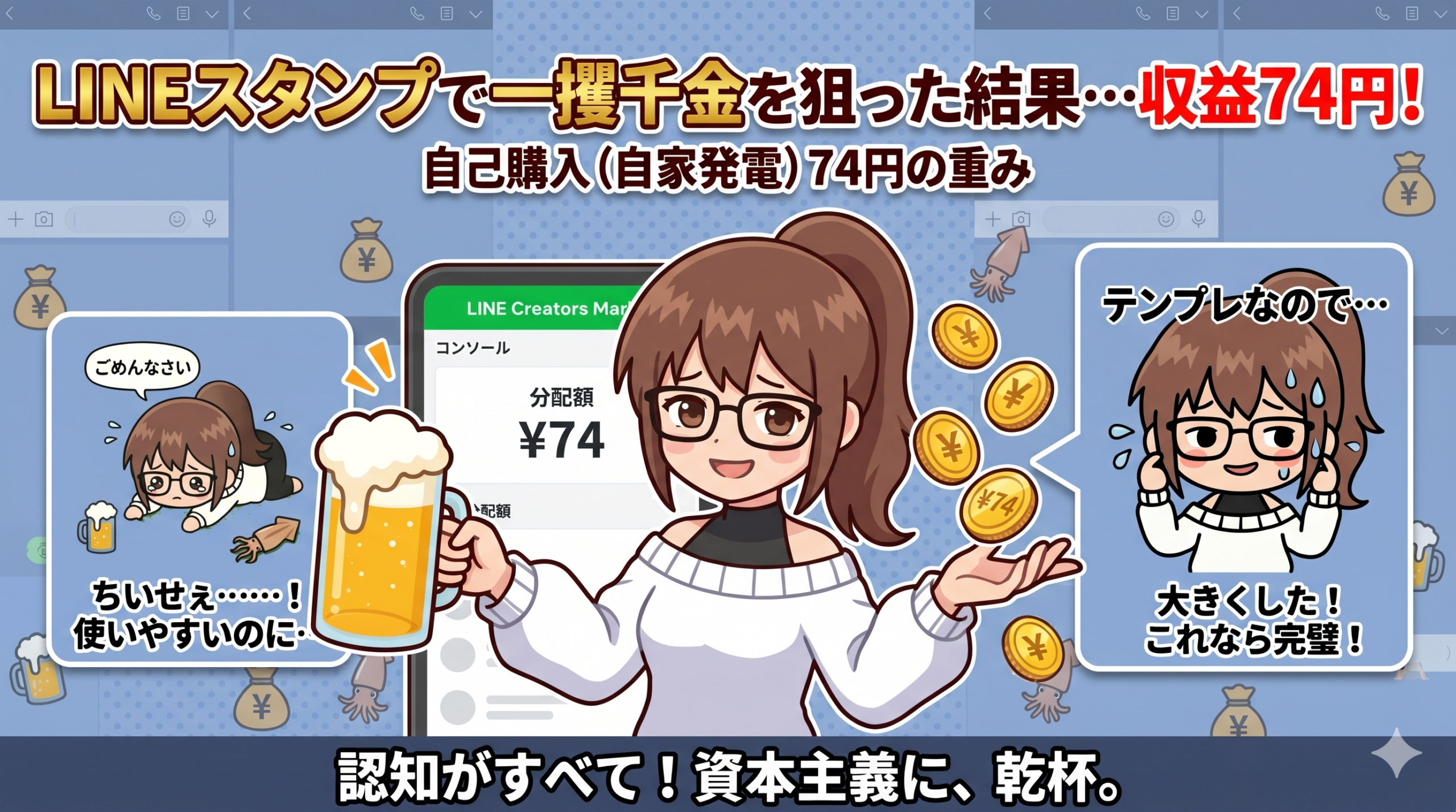 LINEスタンプで一攫千金を狙った結果、収益74円を達成しました